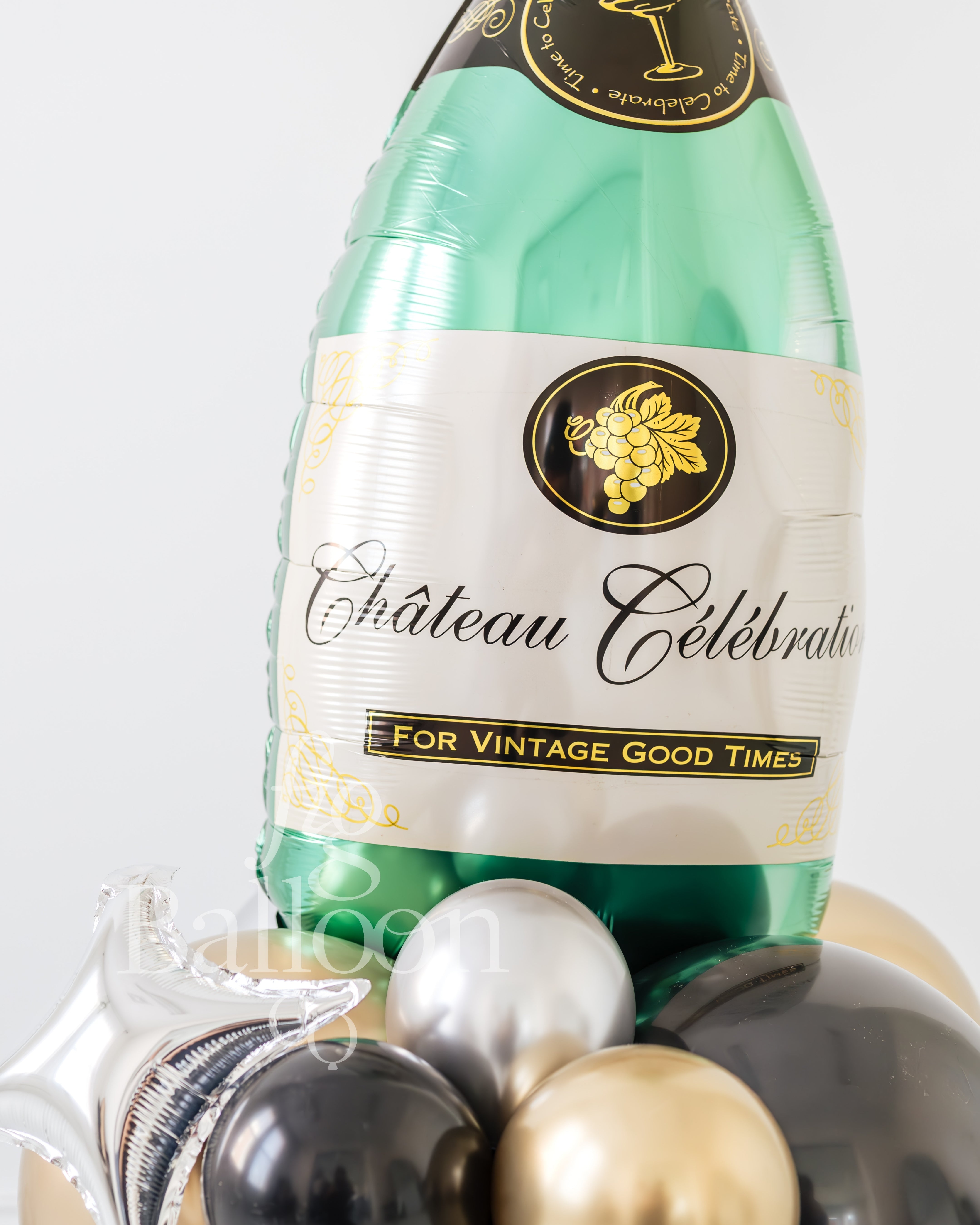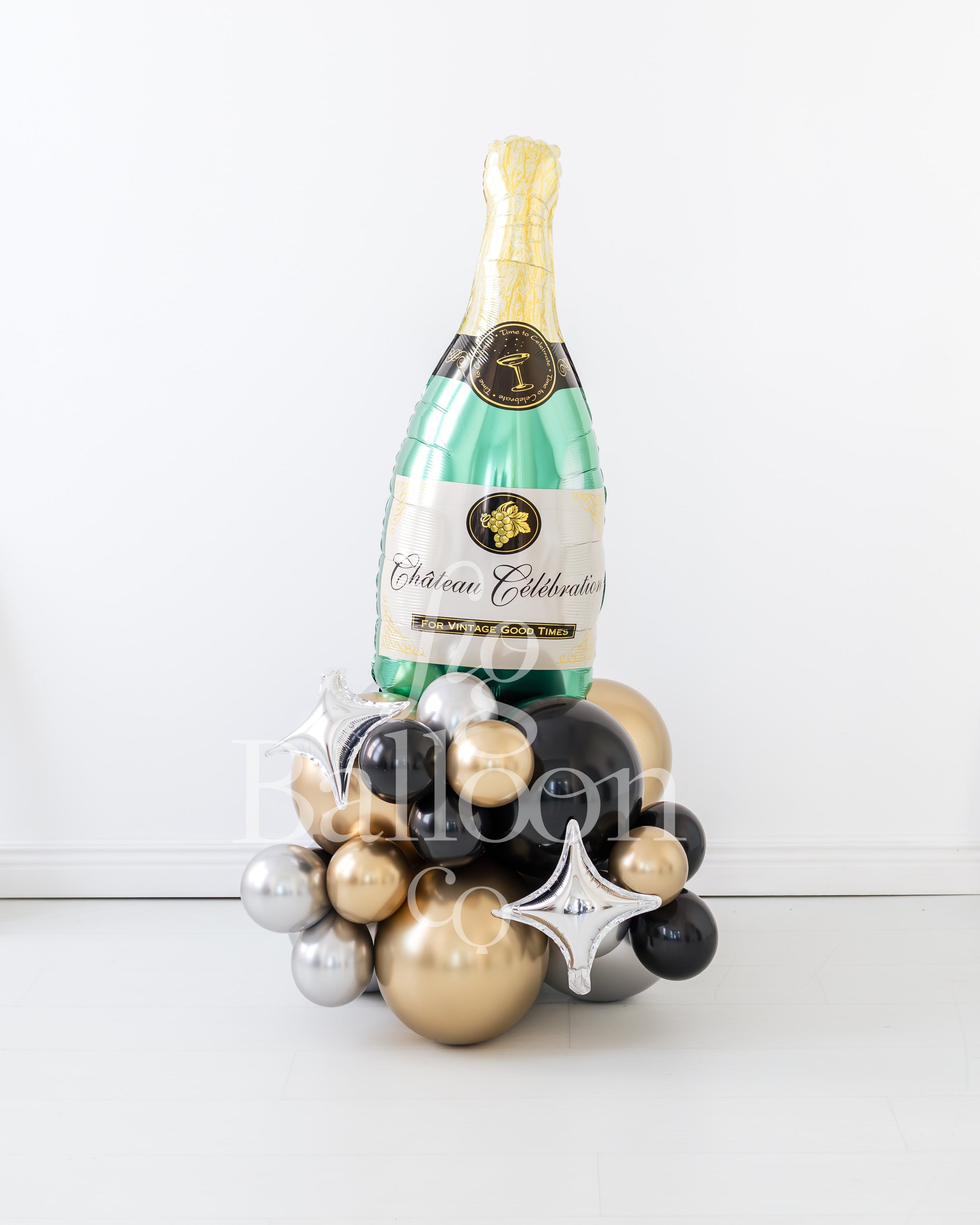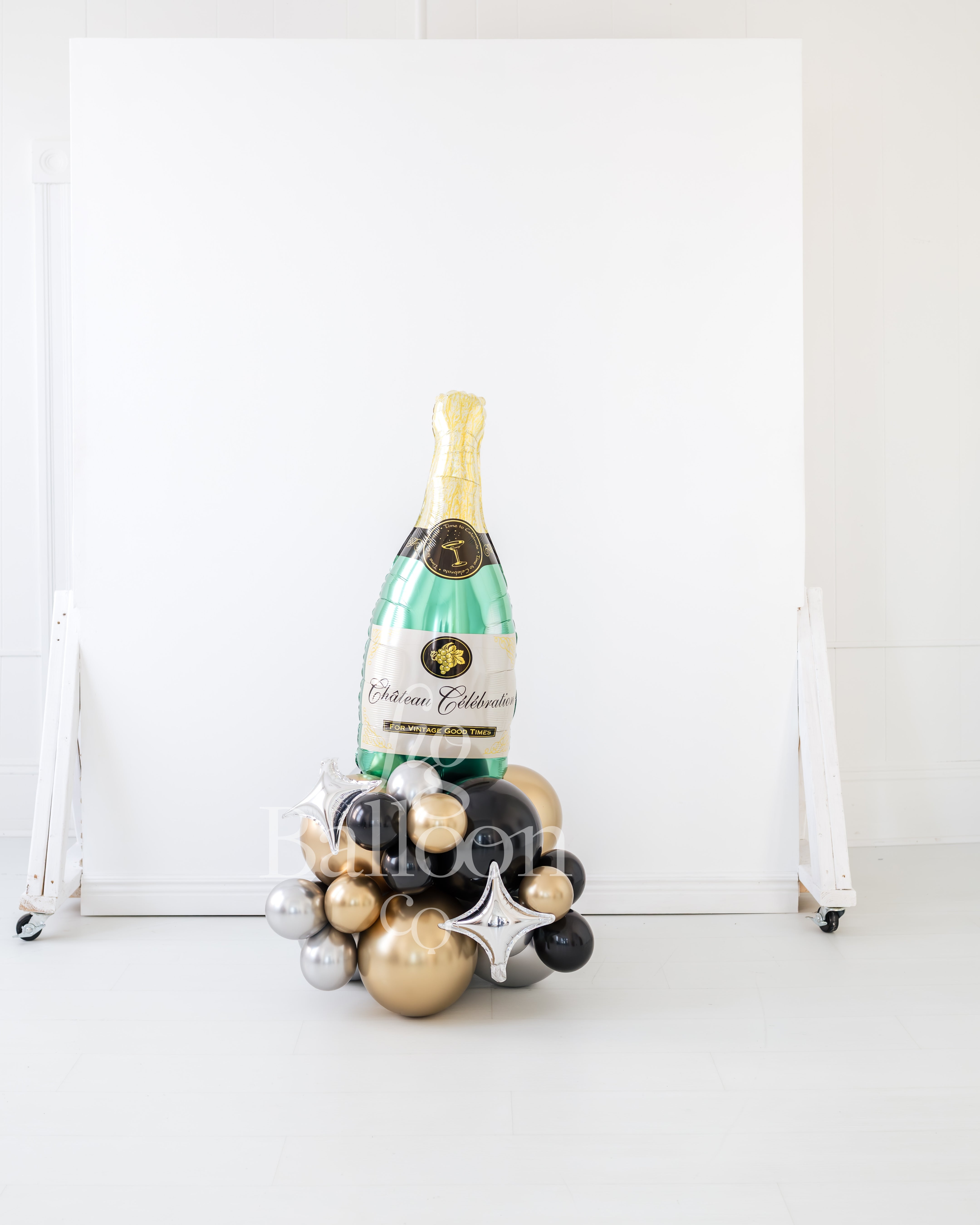 Includes: Pre-built and inflated balloon stack with mylar champagne balloon secured on top! Each stack is weighted to help it stay put!