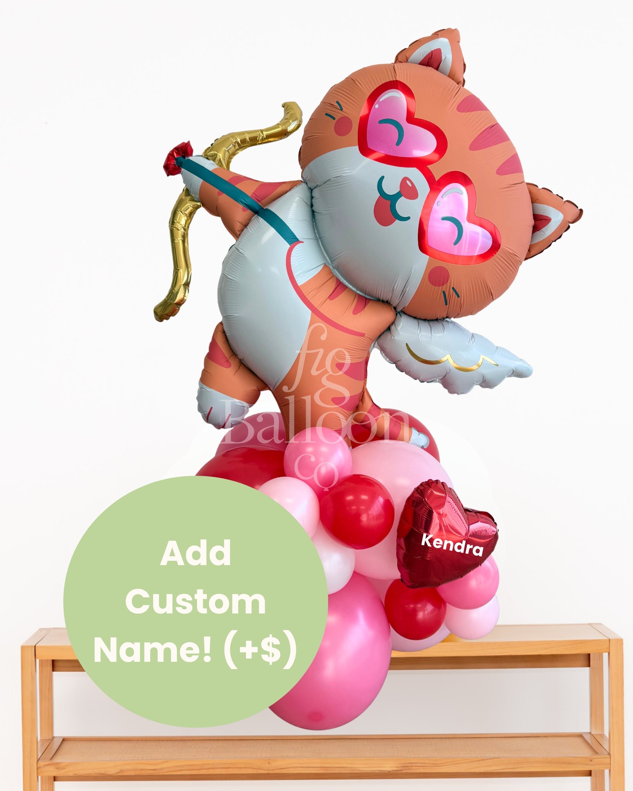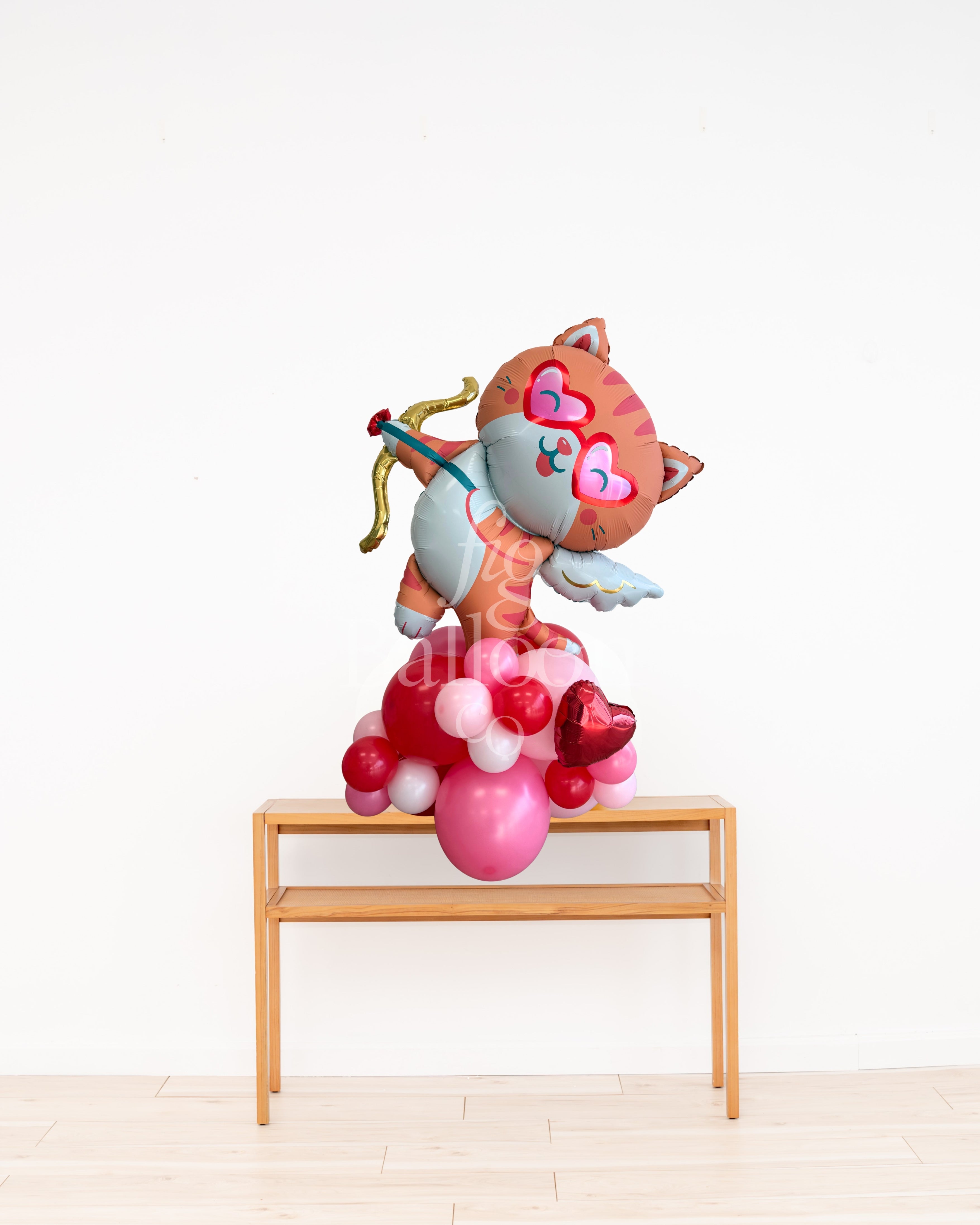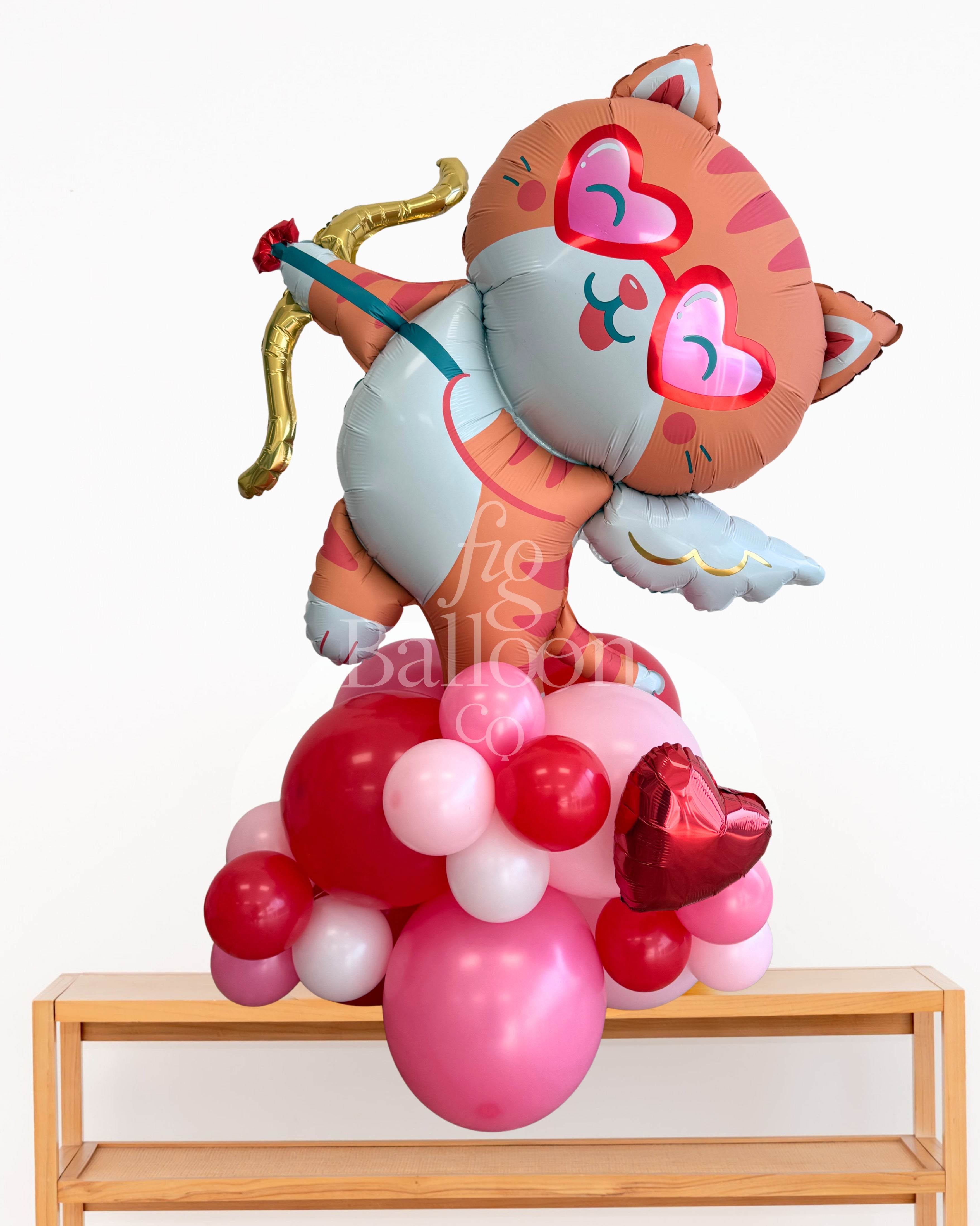 Includes: Pre-built and inflated balloon stack with Cat Cupid balloon topper.