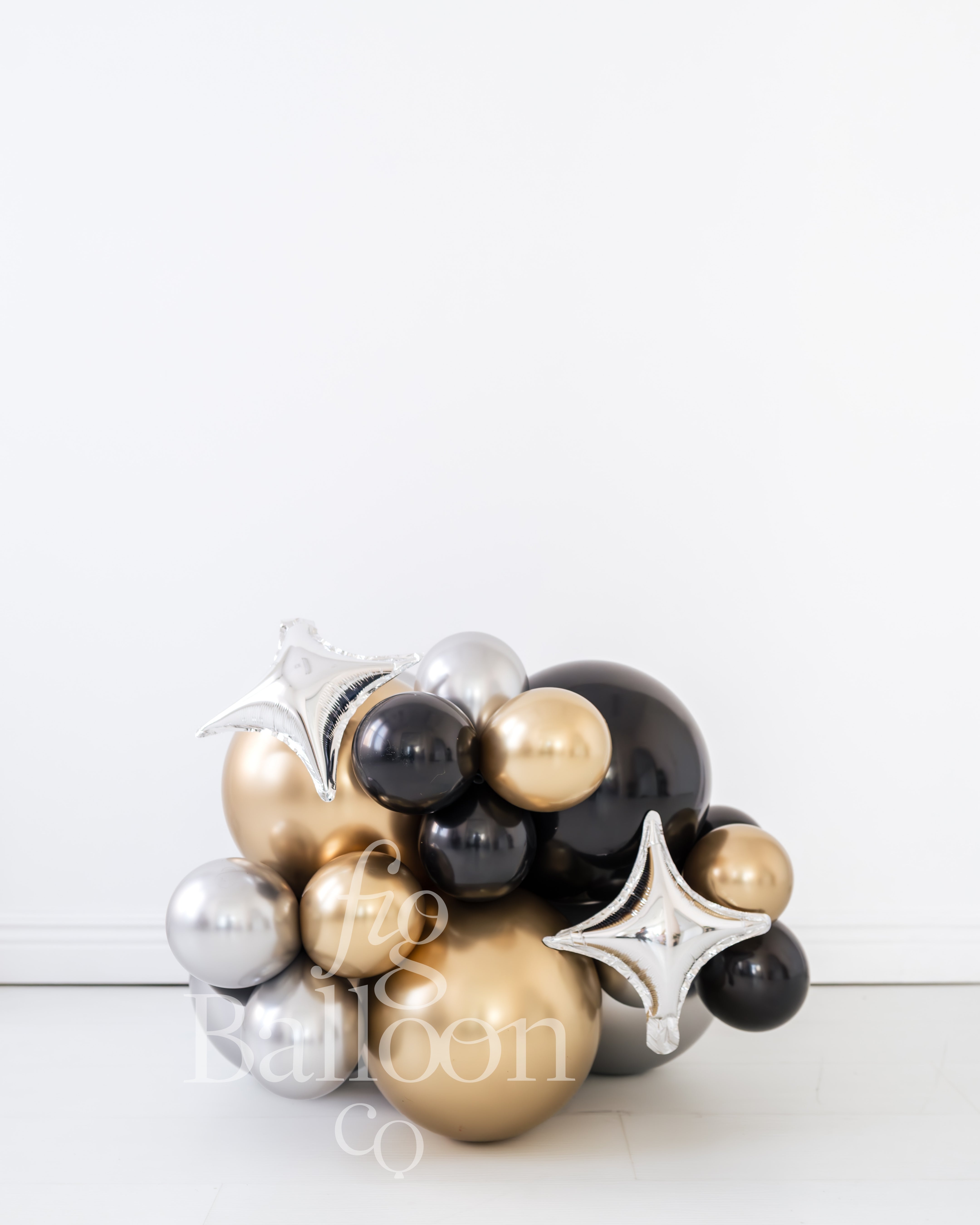 Includes: Pre-inflated and built balloon cluster. This balloon cluster is made of balloons that range from 5" to 11" and includes (2) sparkle mylar balloons attached to cluster!
