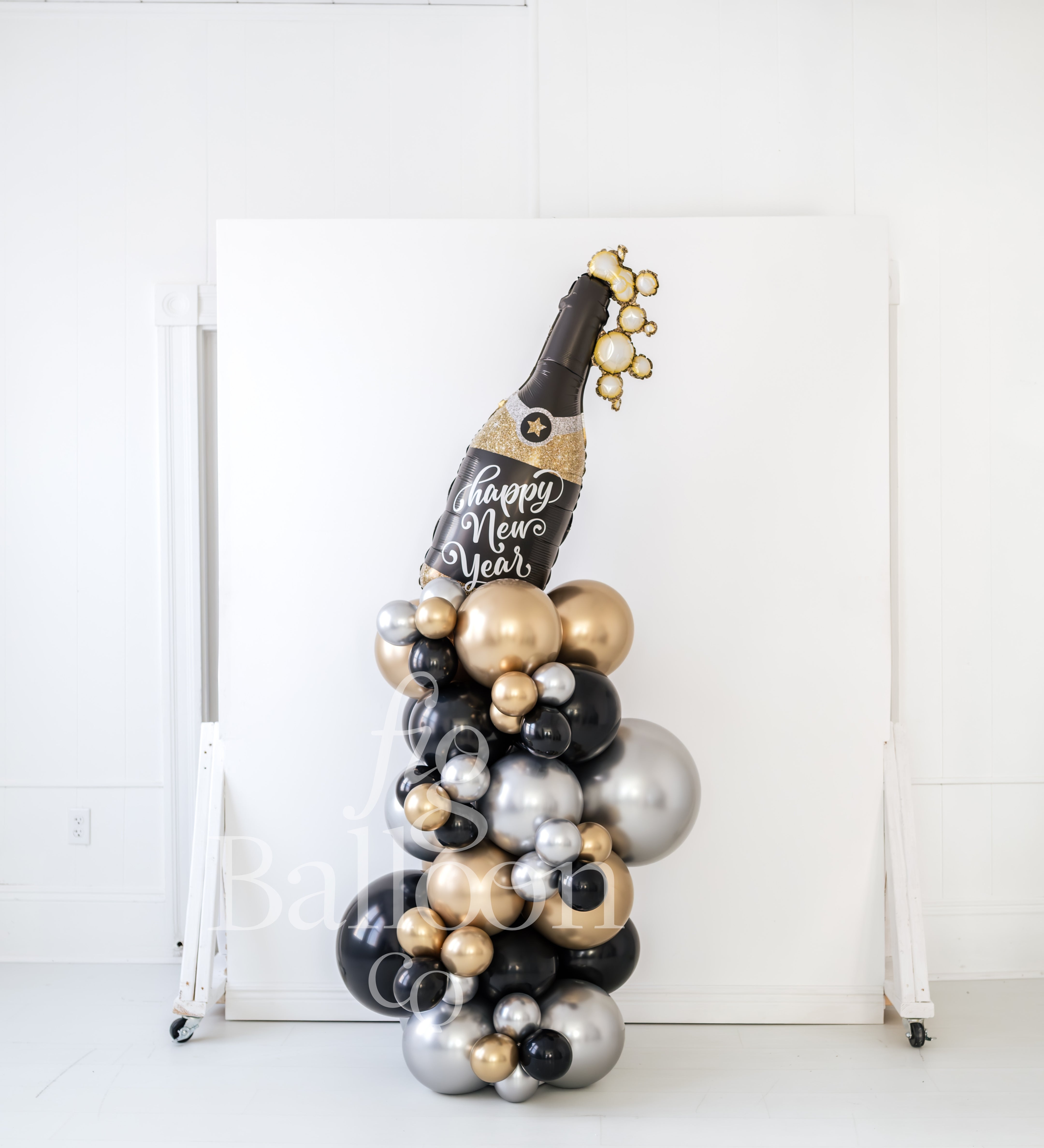 NYE Spilled Champagne Balloon Letter Stacks
