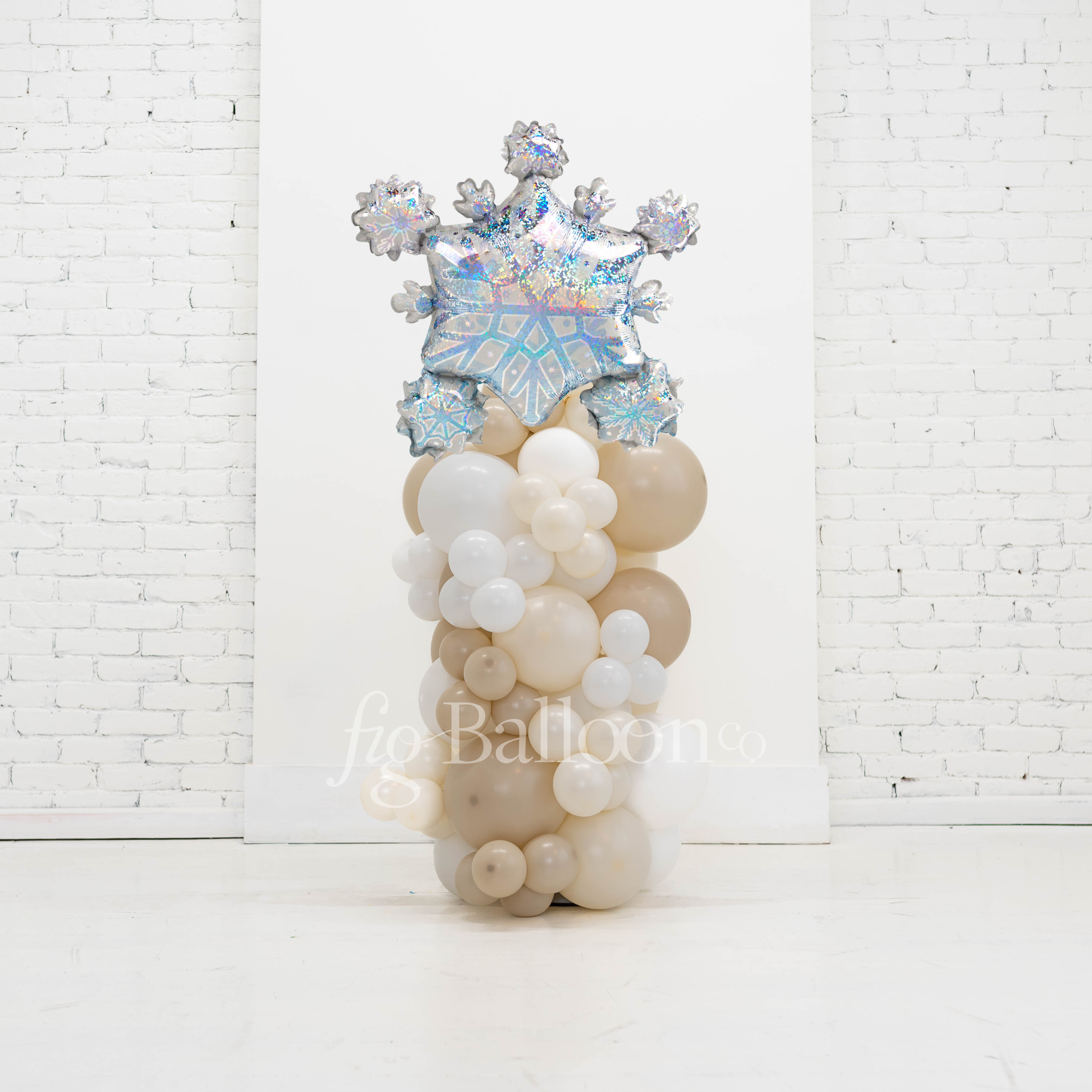 Includes: Pre-built and inflated balloon column (stand is yours to keep!) with mylar snowflake balloon secured on top!
