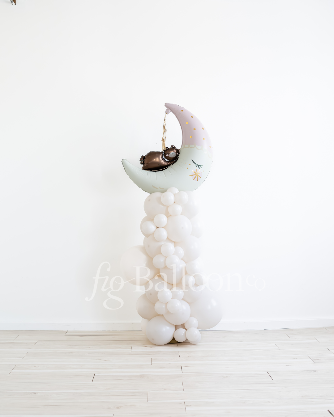Includes: Pre-built and inflated balloon column (stand is yours to keep!) with mylar teddy bear on the moon secured on top!