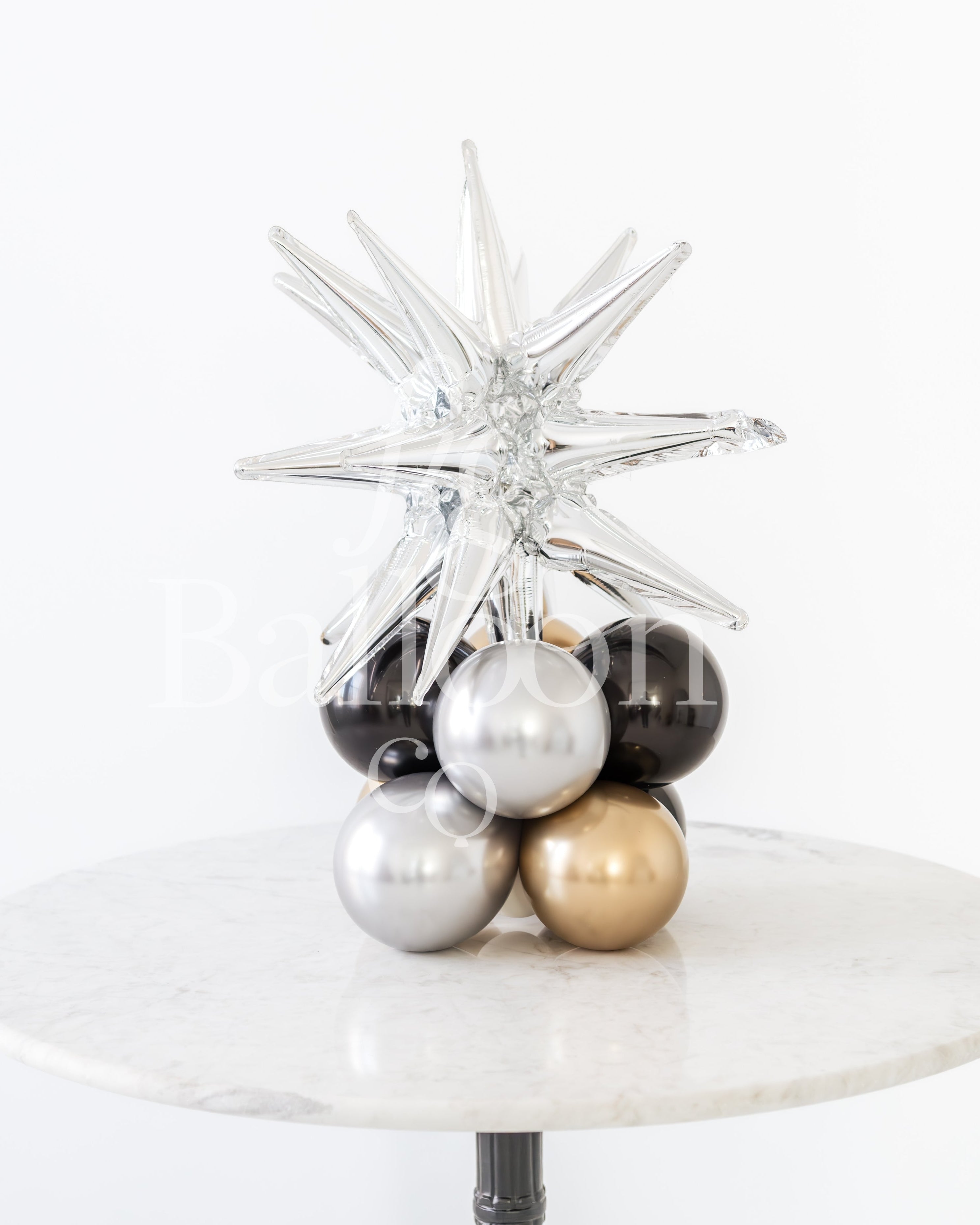 Includes: Pre-built and inflated balloon stack with starburst attached. Each stack is weighted to help it stay put!