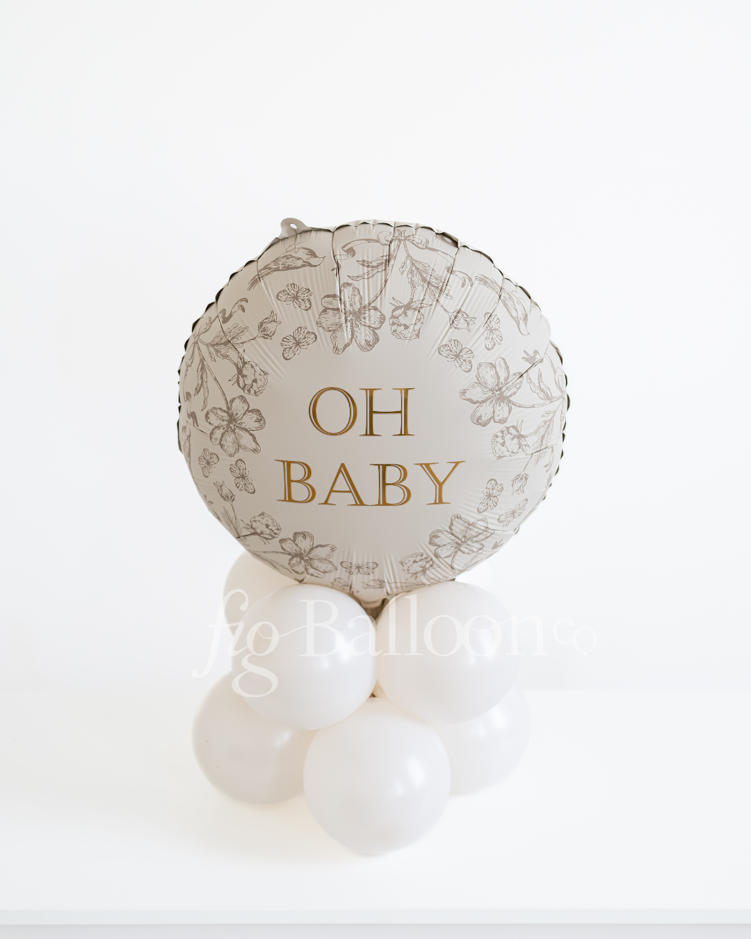 Includes: Pre-built and inflated balloon stack with "Oh Baby" balloon secured on top! The stack is weighted to help it stay put!