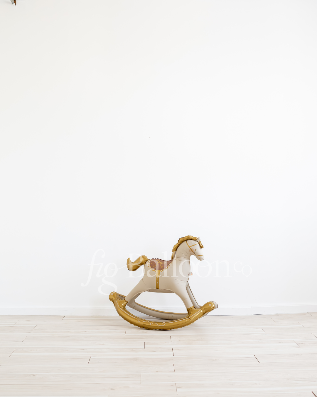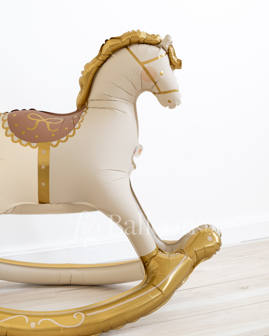 Includes: Air-filled, stand-alone, rocking horse foil balloon. This cutie stands on it's own, and is easily moveable! (does not float)
