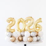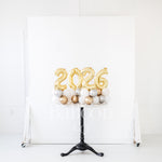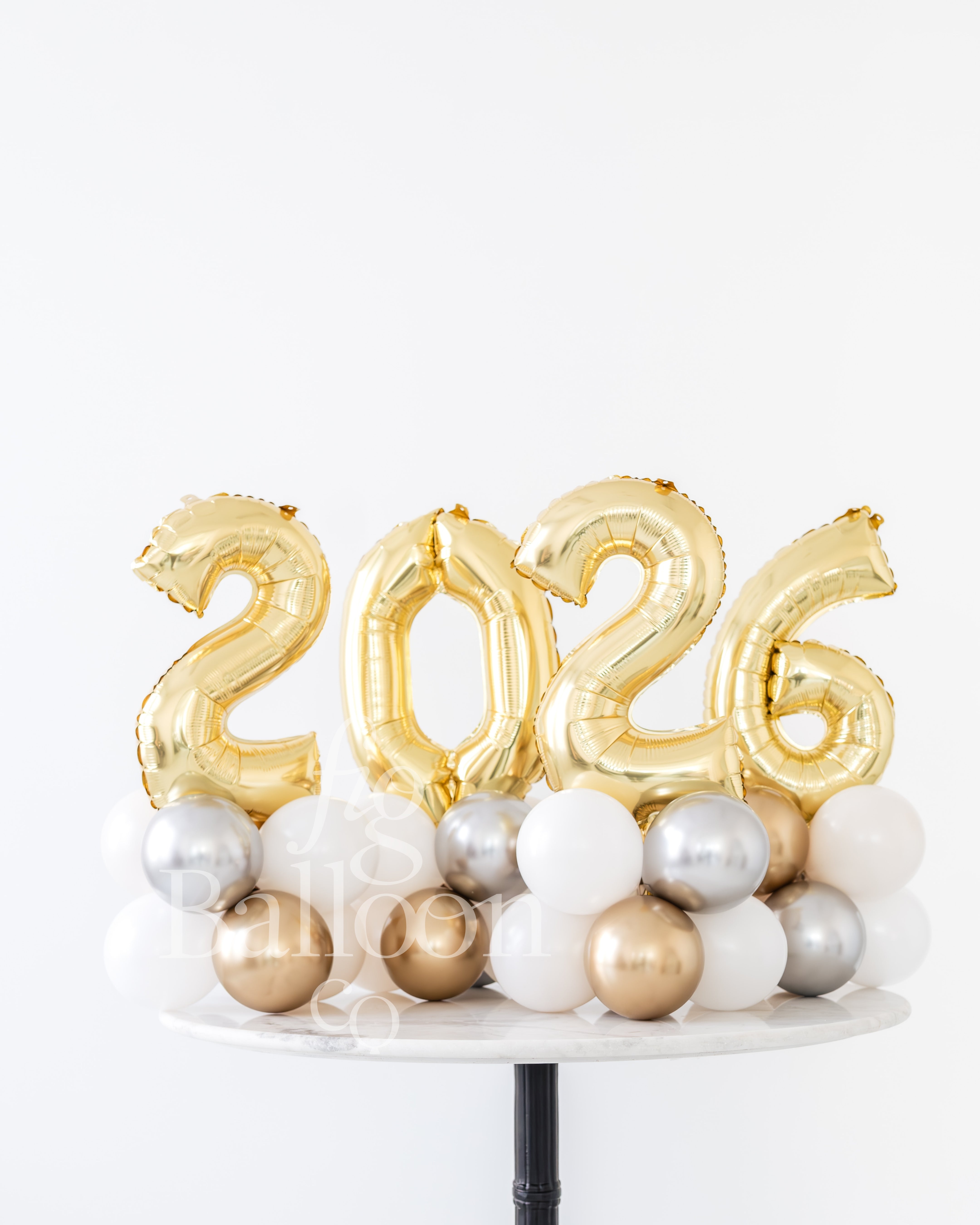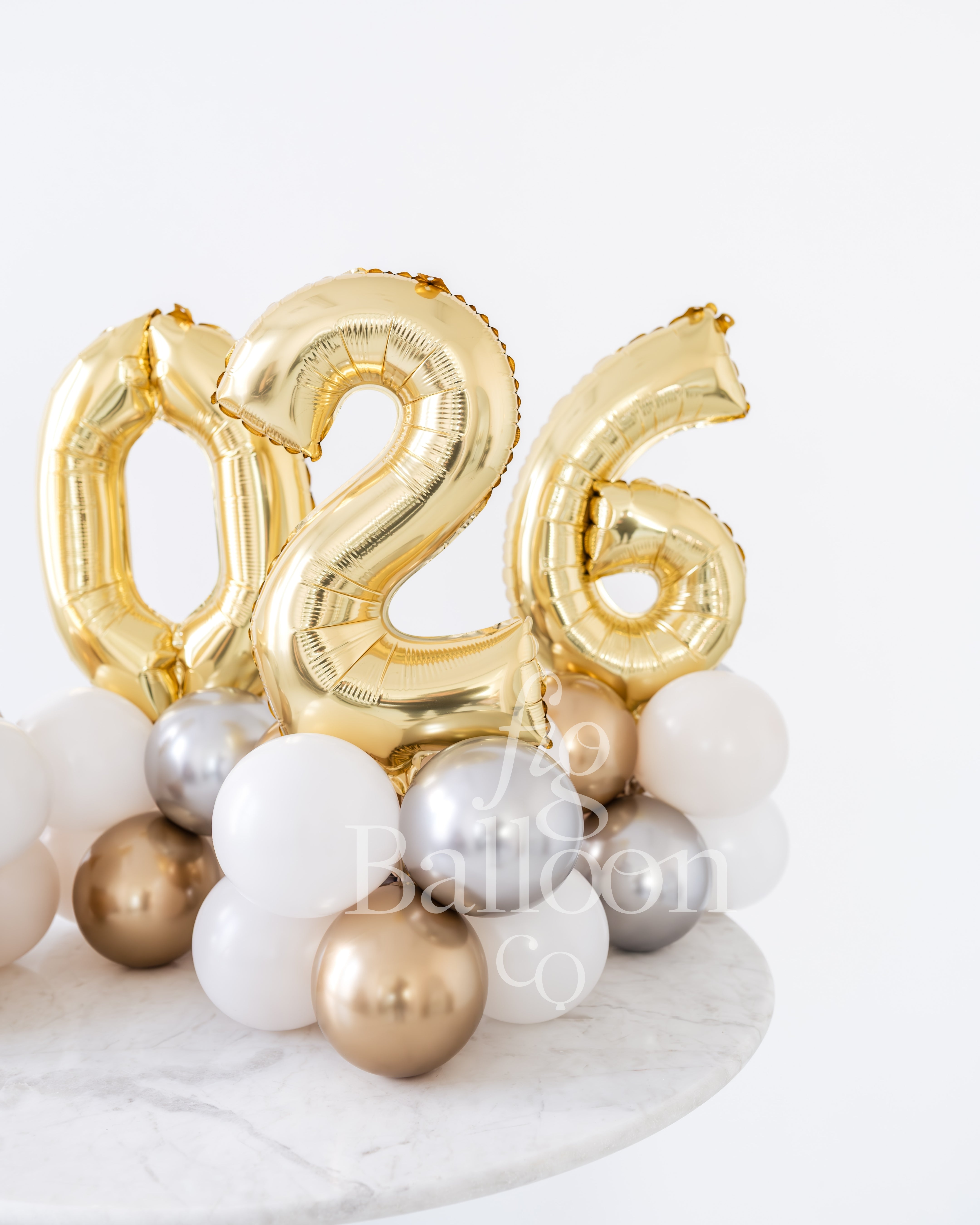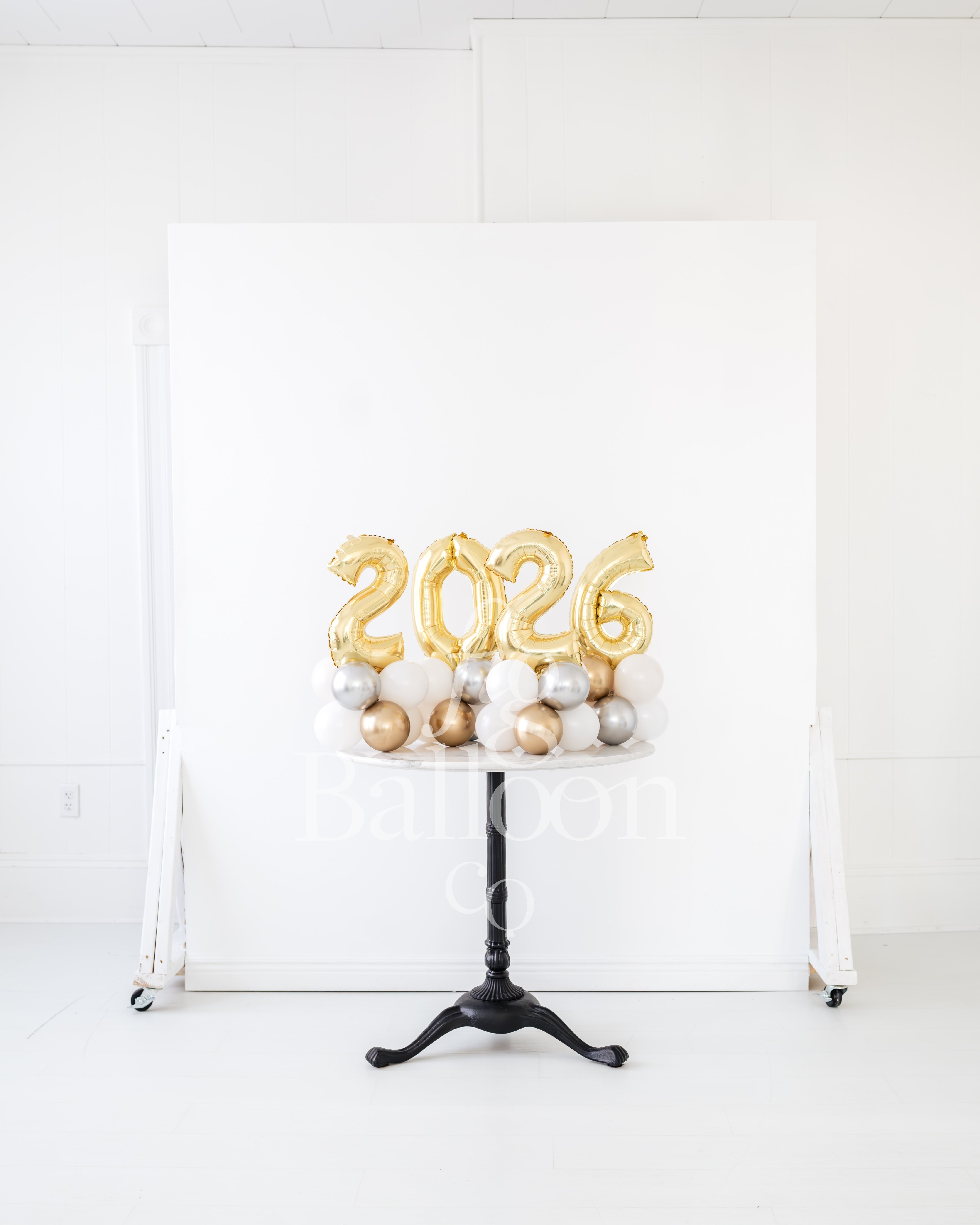 Includes: Pre-built and inflated balloon tabletop stacks with mylar numbers (2026) attached. Each stack is weighted to help it stay put!
