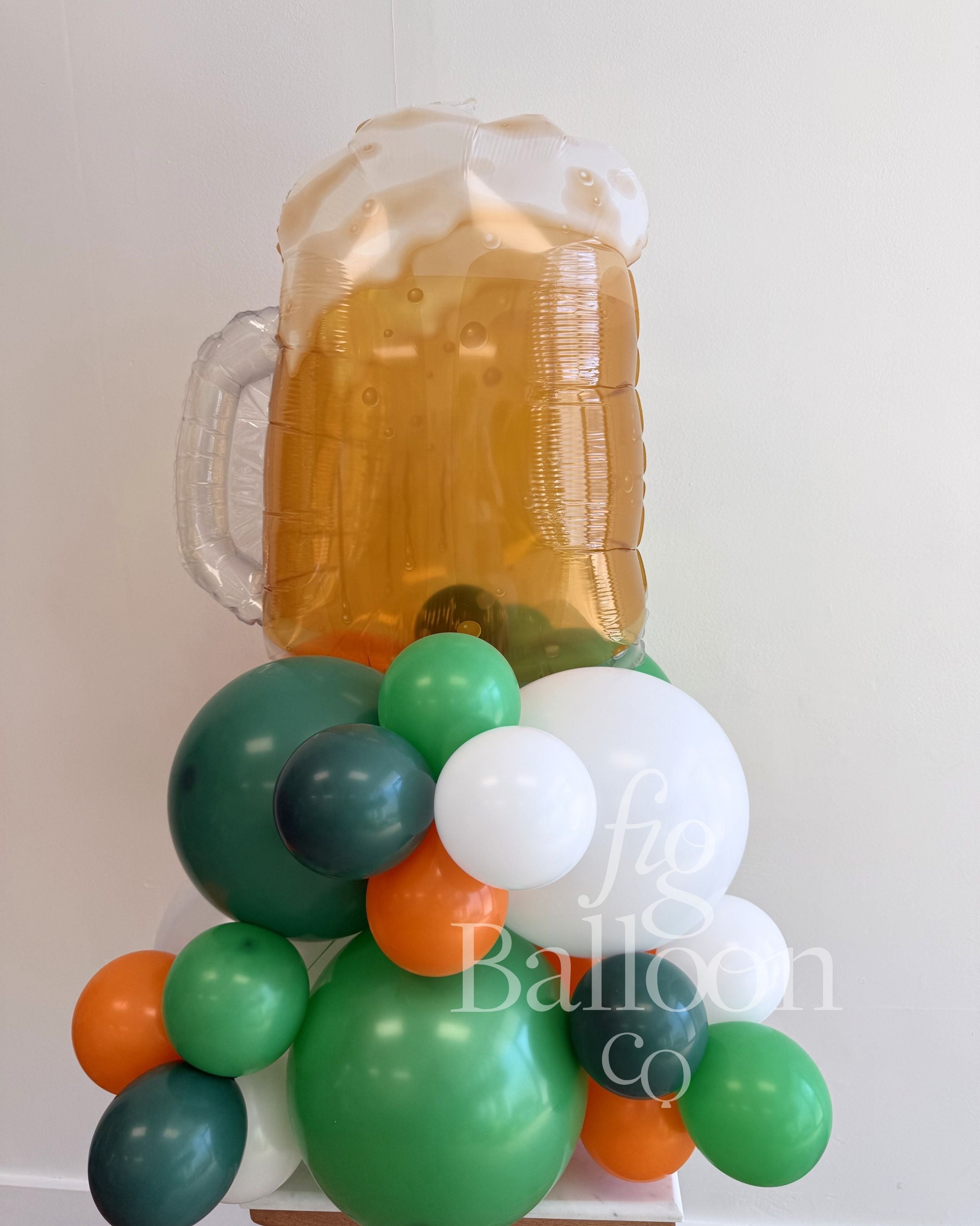 Includes: Pre-built and inflated balloon stack with Beer Mug Balloon topper.